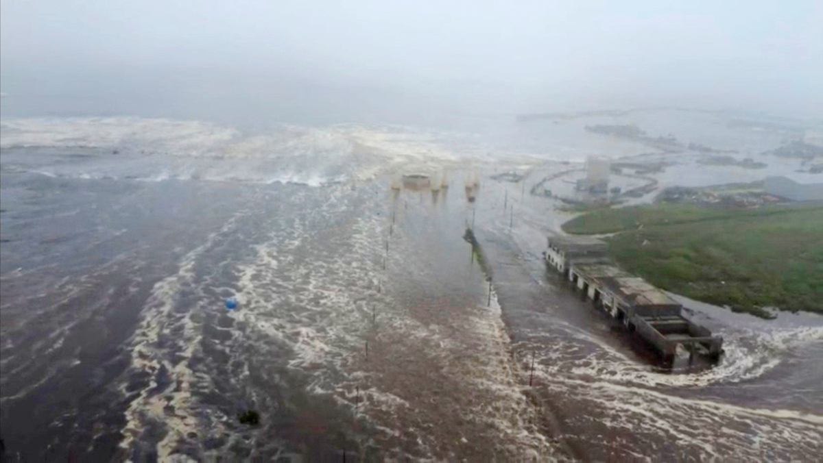 Sóng thần gây ngập lụt thị trấn ven biển Nga. (Ảnh: Reuters)