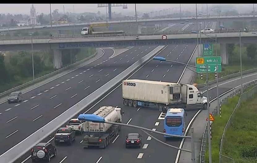 Toàn cảnh tài xế container quay xe trên cao tốc Hà Nội - Hải Phòng