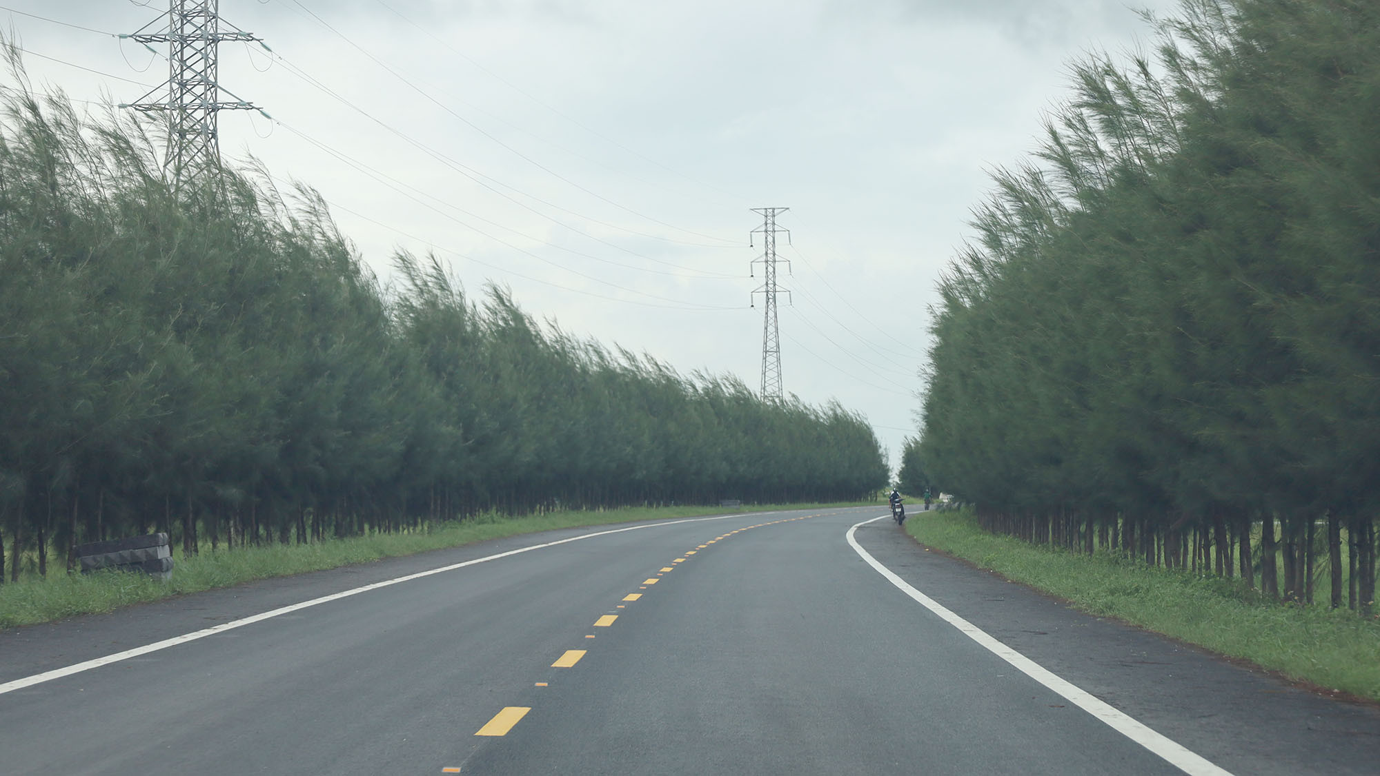 Tuyến đường thiết kế 4 làn xe, vạch kẻ đường phân làn dành cho xe ô tô, xe máy, xe thô sơ... Hai bên đường trồng cây chắn gió, tạo cảnh quan xanh mát, bảo vệ môi trường.