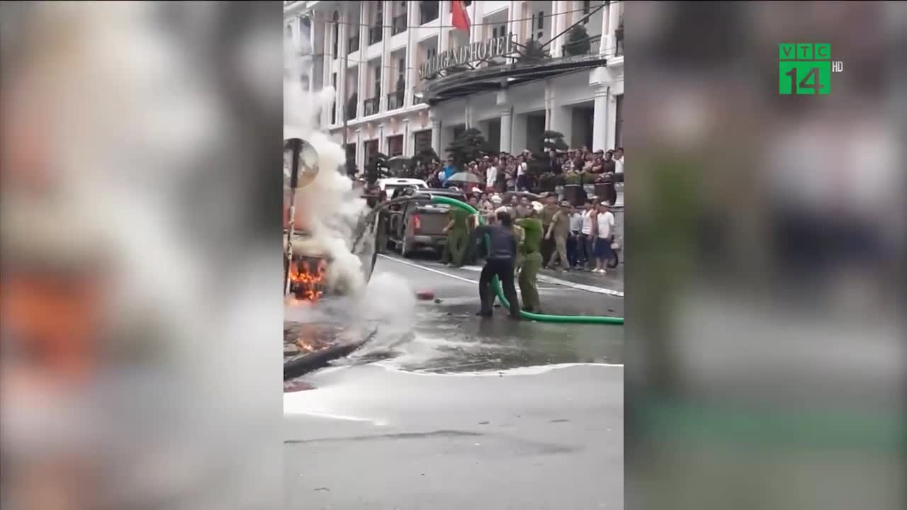 Chiều 4/8, một chiếc xe limousine đang dừng đỗ bên đường tại thị trấn Sa Pa, Lào Cai bỗng dưng bốc cháy, tình huống cấp bách khiến lực lượng chữa cháy phải dùng đến xe hút bể phốt để dập lửa.