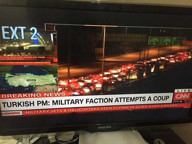 Vụ đảo chính xảy ra vào 22h giờ địa phương sau khi quân đội bắt đầu chặn dòng người qua lại tại 2 cây cầu Bosphorus Bosphorus và Fatih Sultan, Thổ Nhĩ Kỳ. Các binh sĩ cùng lực lượng an ninh cũng đã được triển khai trên nhiều con đường chính tại một số địa điểm ở thành phố Istanbul và thủ đô Ankara trong khi máy bay chiến đấu và trực thăng của nước này liên tục chao lượn ơ hai nơi này.