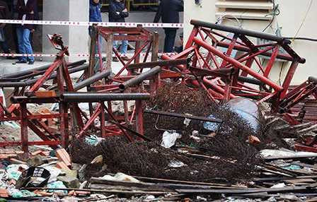 Chiếc thang vận đang đưa công nhân cùng vật liệu xây dựng lên đến khoảng tầng 20 thì bất ngờ rơi tự do xuống đất khiến 3 người thương vong.
