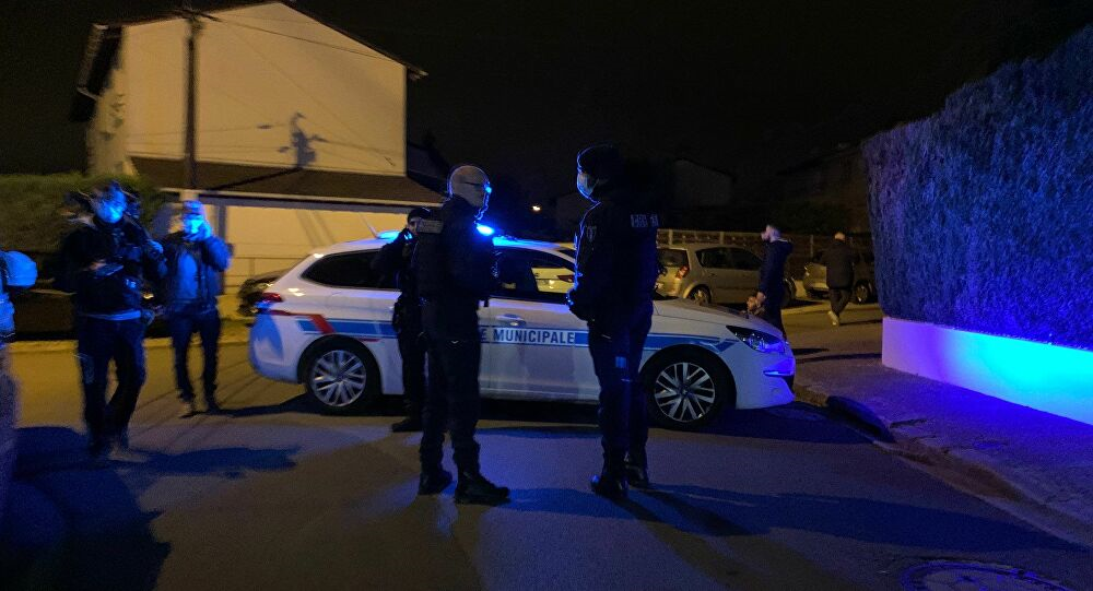 Cảnh sát bảo vệ hiện trường vụ án tại vùng ngoại ô Conflans St Honorine ở Paris, Pháp. (Ảnh: Sputnik)