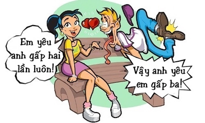 - Vậy cơ à? Vậy anh yêu em gấp ba lần em yêu anh luôn nè!