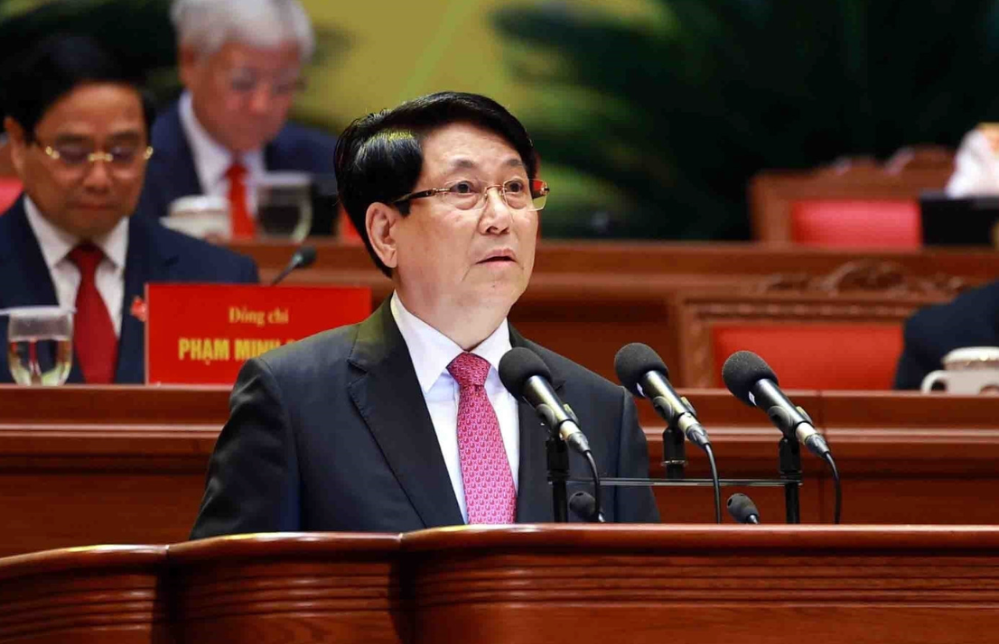 Chủ tịch nước Lương Cường trình bày diễn văn khai mạc Đại hội đại biểu toàn quốc lần thứ XIV của Đảng. (Ảnh: TTXVN)