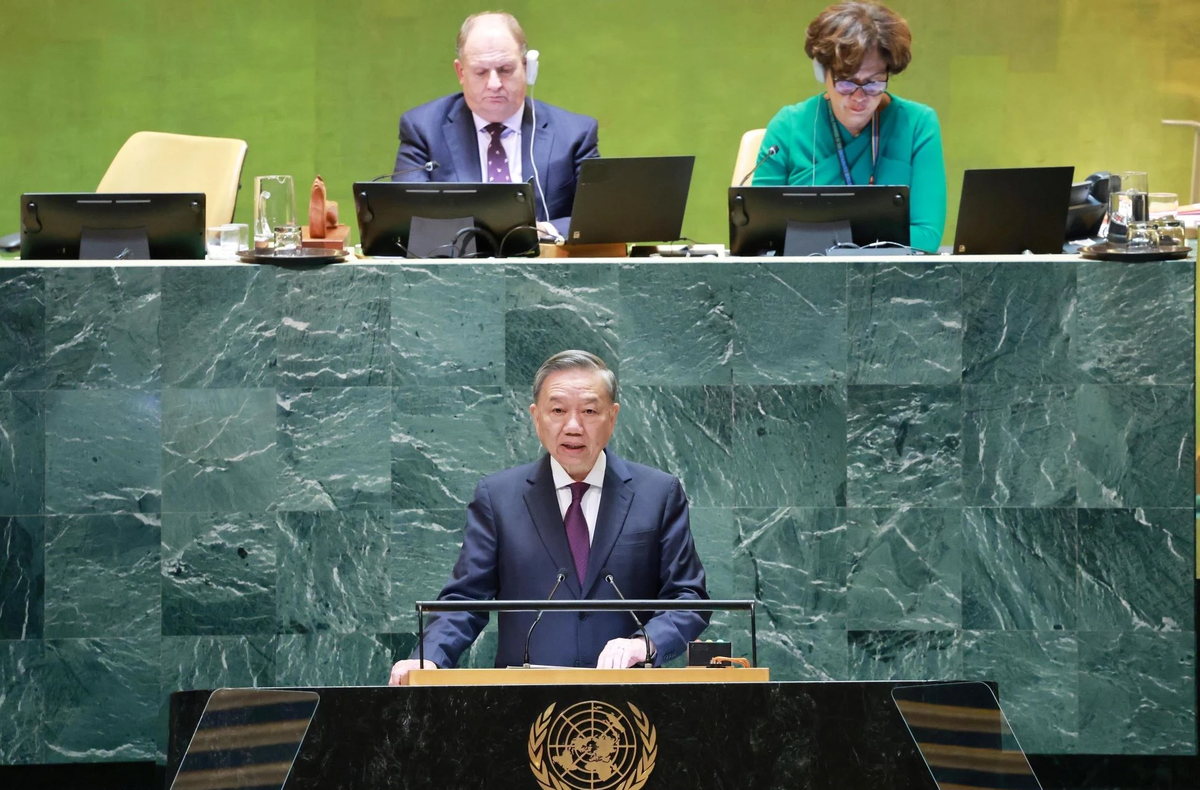 Tổng Bí thư, Chủ tịch nước Tô Lâm phát biểu tại Phiên thảo luận chung cấp cao Đại hội đồng Liên hợp quốc Khóa 79. (Ảnh: Lâm Khánh/TTXVN)