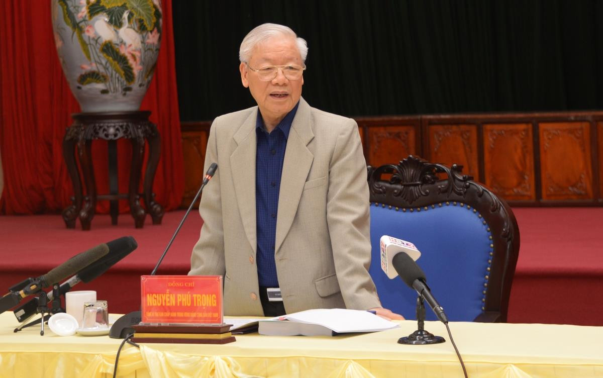 Tổng Bí thư Nguyễn Phú Trọng phát biểu tại buổi làm việc