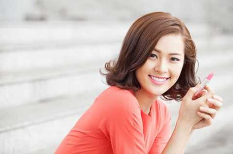 | Tâm Tít thường xuyên đánh son màu nổi để tôn lên nước da trắng cũng như mái tóc ngắn uốn xoăn duyên dáng. |