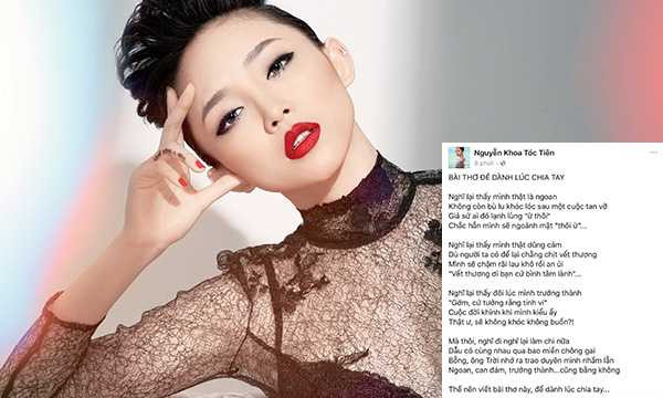 Mới đây, trên trang facebook cá nhân của mình, nữ ca sỹ Tóc Tiên vừa chia sẻ một bài viết có tựa là Bài thơ để dành lúc chia tay. Tóc Tiên viết: