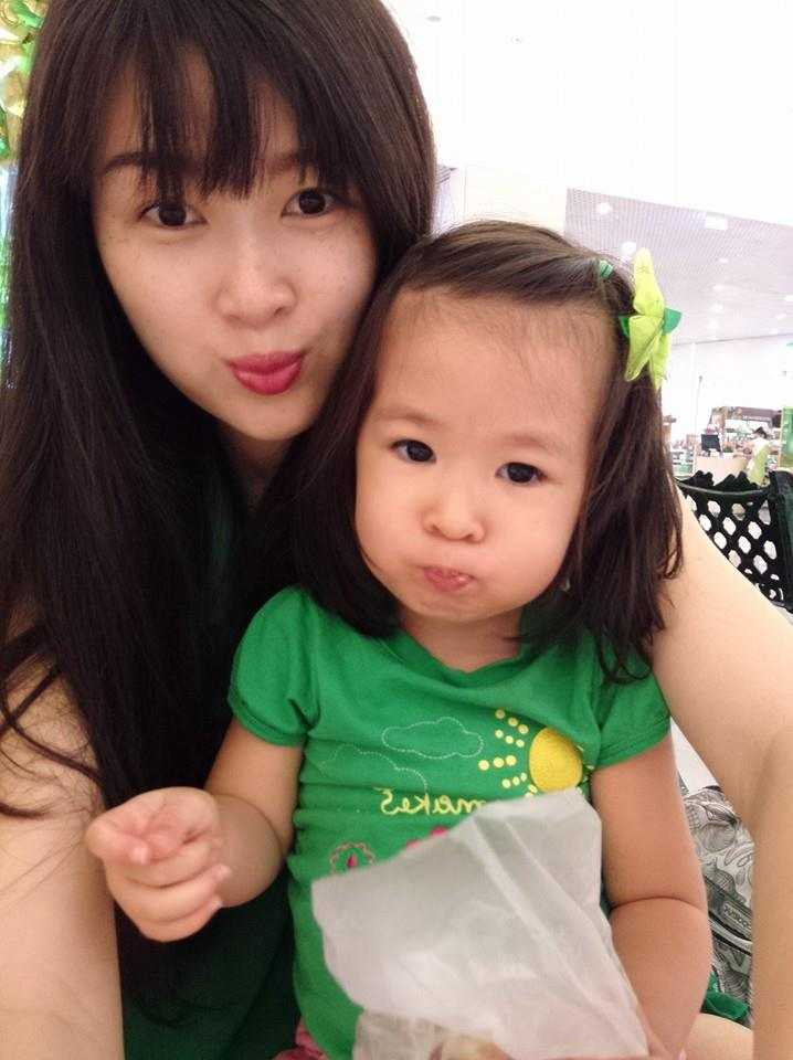 Hình ảnh dễ thương của Mạc Anh Thư và bé Cát.