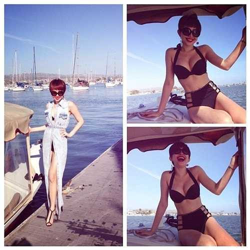 Với mái tóc tém cùng những trang phục vừa cổ điển vừa gợi cảm, Tóc Tiên thả hồn phiêu lãng với sóng biển