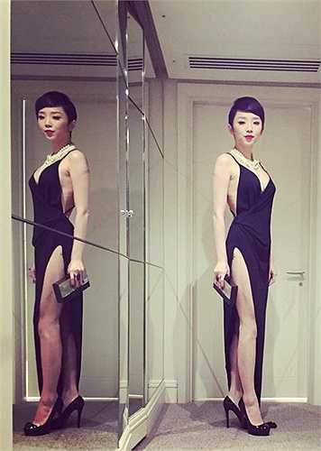 Chiếc váy xẻ sâu, phong cách trang điểm ấn tượng đã thành thương hiệu của giọng ca 'Ngày mai'.