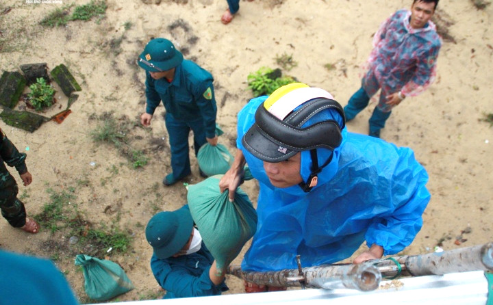 Dân quân, bộ đội trên địa bàn TP Tam Kỳ (tỉnh Quảng Nam) ra quân chằng chống nhà cửa hỗ trợ người dân tránh bão Noru.