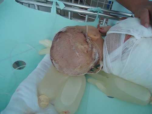Bé My bị bỏng toàn thân.