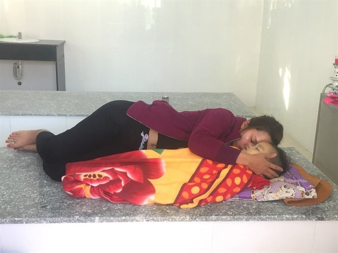 Mẹ cháu bé ôm thi thể con khóc nghẹn khiến nhiều người không cầm được nước mắt. (Ảnh: VT)