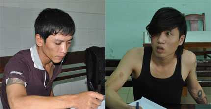 | Hai đối tượng Chiến và Sang tại cơ quan công an |