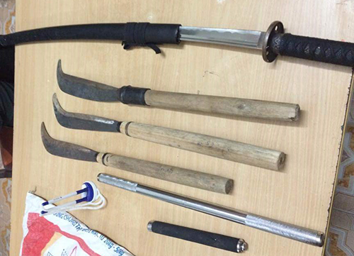 | Các loại vũ khí thu giữ của 4 thanh niên |