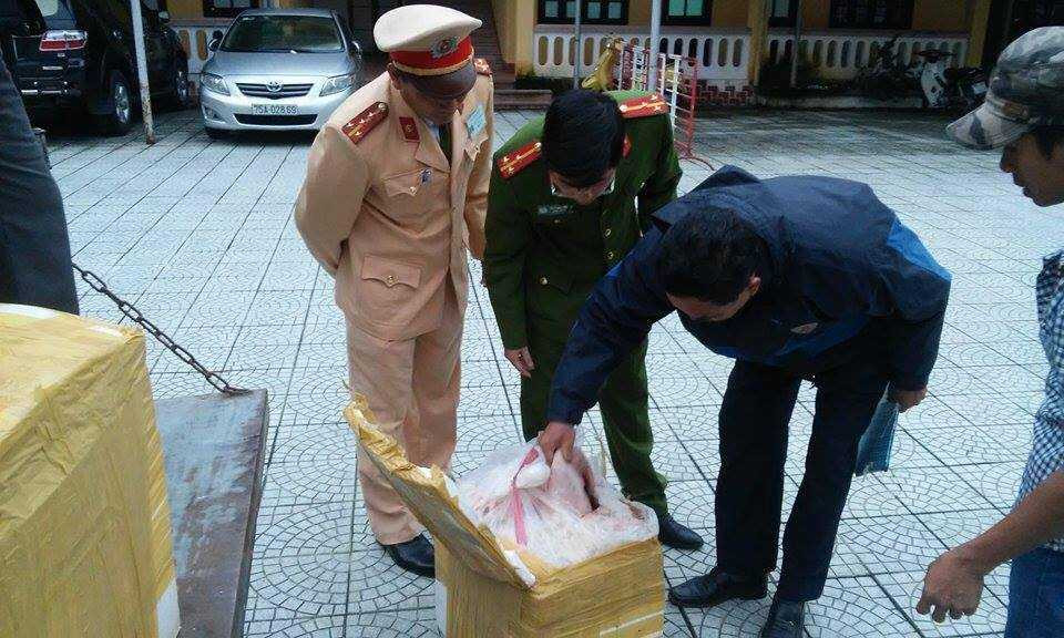 Hiện lực lượng CSGT đã bàn giao toàn bộ số nội tạng kể trên cho Chi cục Thú y tỉnh Thừa Thiên – Huế để xử lý theo quy định.