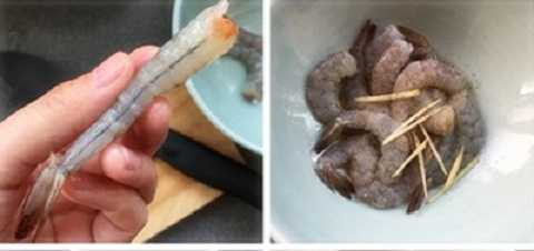 Tôm bóc vỏ, bỏ đầu, giữ đuôi, rạch lưng, rút chỉ đen.