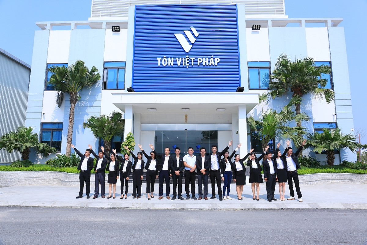 Cán bộ công nhân viên chụp tại nhà máy Tôn Việt Pháp.