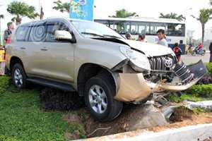 (VTC News) - Một vụ tai nạn giao thông xảy ra tại khu vực đường dẫn cầu Trần Thị Lý (Đà Nẵng) khiến chiếc xe tiền tỷ hiệu Toyota Prado hư hỏng nặng.