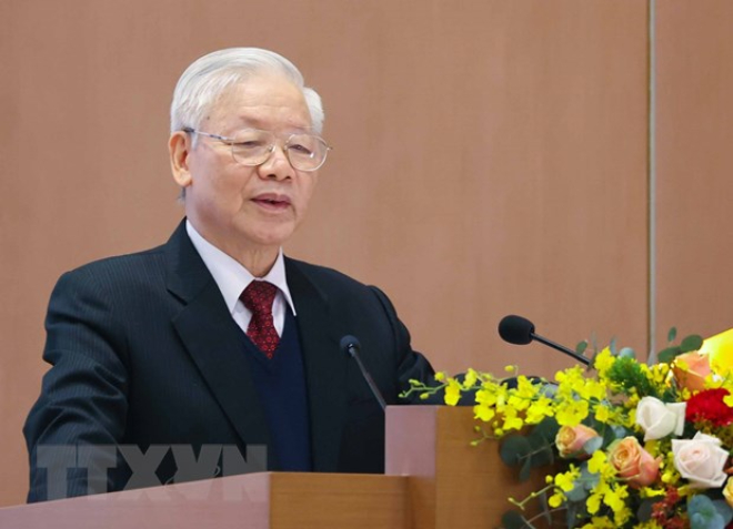 Tổng Bí thư, Chủ tịch nước Nguyễn Phú Trọng phát biểu. (Ảnh: Thống Nhất/TTXVN)