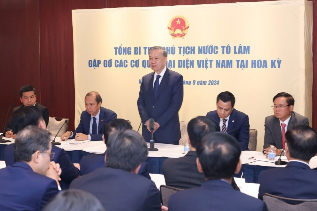 Trong khuôn khổ chuyến công tác tham dự Tuần lễ cấp cao Đại hội đồng Liên hợp quốc khoá 79 và làm việc Mỹ, Tổng Bí thư, Chủ tịch nước Tô Lâm và đoàn đại biểu cấp cao Việt Nam đã có cuộc gặp mặt thân mật với các cán bộ, nhân viên Đại sứ quán, Phái đoàn Thường trực bên cạnh Liên hợp quốc và các cơ quan đại diện khác của Việt Nam.