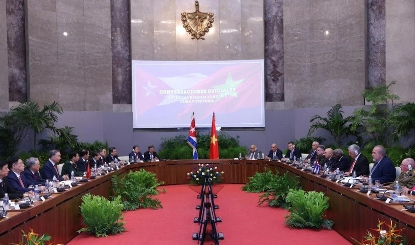 Theo đặc phái viên TTXVN, chiều 26/9 (giờ địa phương), ngay sau Lễ đón cấp Nhà nước trọng thể tại Cung Cách mạng ở La Habana, Tổng Bí thư, Chủ tịch nước Tô Lâm đã hội đàm cấp cao với Bí thư thứ nhất, Chủ tịch nước Cuba Miguel Díaz-Canel Bermúdez.