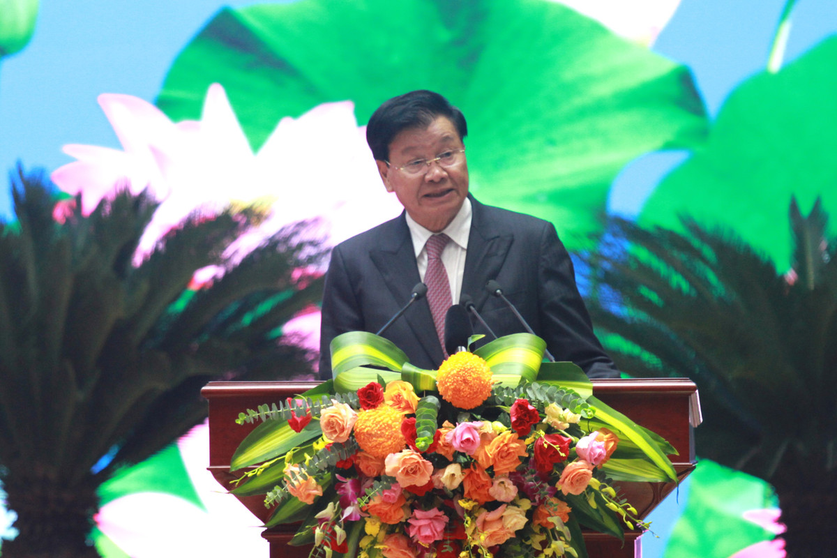 Tổng Bí thư, Chủ tịch Lào đọc lại những câu thơ mà ông cho rằng đúc kết mối quan hệ đặc biệt Lào-Việt Nam và Việt Nam-Lào. "Thương nhau mấy núi cũng trèo - Mấy sông cũng lội mấy đèo cũng qua - Việt Lào hai nước chúng ta - Tình sâu hơn nước Hồng Hà, Cửu Long".