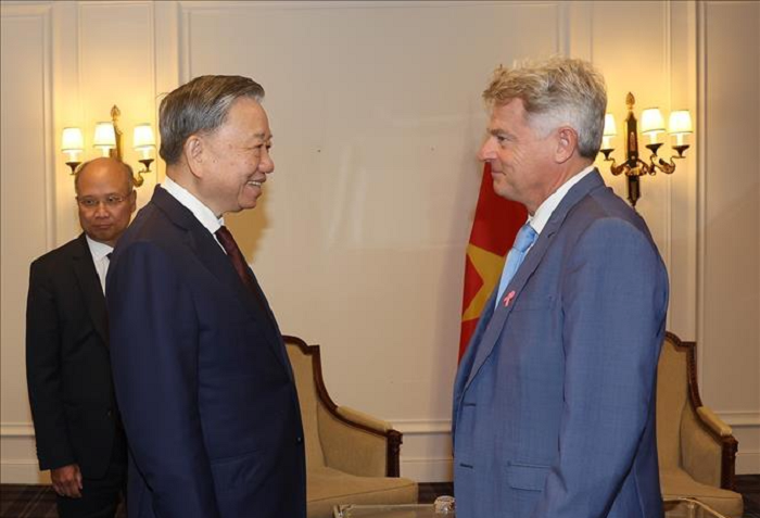 Bí thư toàn quốc Đảng Cộng sản Pháp Fabien Roussel bày tỏ vui mừng được gặp và trao đổi với Tổng Bí thư, Chủ tịch nước Tô Lâm và đoàn đại biểu cấp cao Việt Nam nhân chuyến thăm chính thức Pháp, đánh giá cao và khẳng định chuyến thăm của Tổng Bí thư, Chủ tịch nước Tô Lâm có ý nghĩa quan trọng giúp tăng cường quan hệ đoàn kết, hữu nghị giữa hai Đảng, đồng thời tạo ra dấu ấn cũng như bước phát triển mới cho quan hệ Đối tác chiến lược giữa hai nước Việt Nam và Pháp.