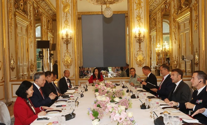 Nhân dịp này, Tổng Bí thư, Chủ tịch nước Tô Lâm mời Tổng thống Macron sớm vào thăm Việt Nam. Tổng thống Macron vui vẻ nhận lời sẽ thăm Việt Nam vào thời điểm thích hợp.