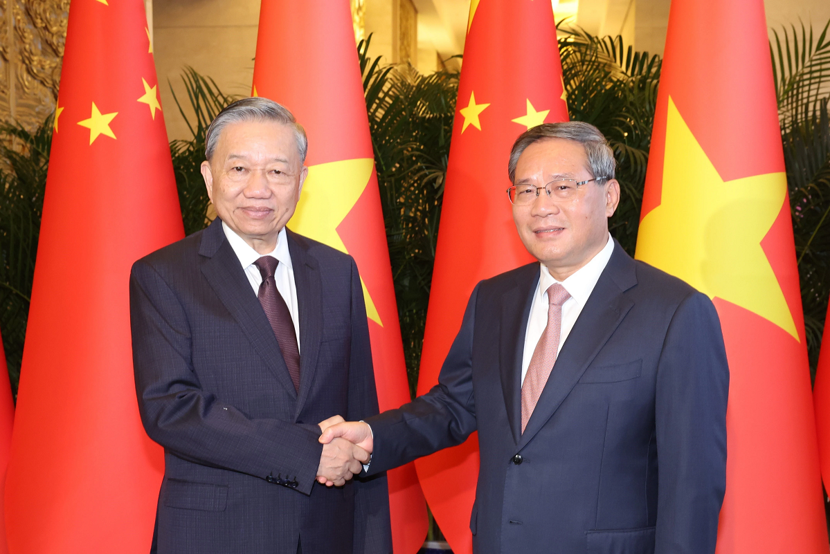 Thủ tướng Lý Cường nhiệt liệt chào mừng Tổng Bí thư, Chủ tịch nước Tô Lâm lần đầu tiên thăm cấp Nhà nước đến Trung Quốc, cũng là chuyến thăm nước ngoài đầu tiên trên cương vị mới; cho rằng điều này thể hiện sự coi trọng, ưu tiên hàng đầu của Đảng, Nhà nước Việt Nam đối với quan hệ Việt - Trung; tin tưởng chuyến thăm quan trọng của Tổng Bí thư, Chủ tịch nước Tô Lâm sẽ tiếp thêm động lực mạnh mẽ, thúc đẩy quan hệ Đối tác hợp tác chiến lược toàn diện, Cộng đồng chia sẻ tương lai Việt Nam - Trung Quốc bước vào giai đoạn phát triển mới, đạt được nhiều thành quả thực chất hơn nữa.