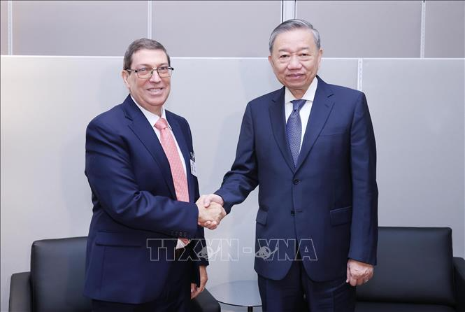 Nhân dịp tham dự Đại hội đồng Liên hợp quốc Khóa 79 và làm việc tại Hoa Kỳ, sáng 24/9 (giờ địa phương), tại thành phố New York, Tổng Bí thư, Chủ tịch nước Tô Lâm tiếp Bộ trưởng Ngoại giao Cuba Bruno Rodriguez.