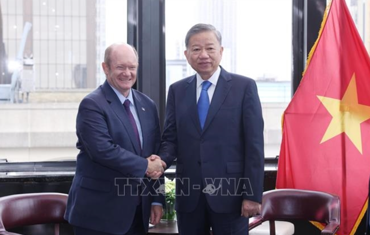 Ngày 25/9, tiếp tục các hoạt động tại New York, Hoa Kỳ, Tổng Bí thư, Chủ tịch nước Tô Lâm đã tiếp Thượng nghị sĩ Chris Coons, đảng viên Dân chủ, Chủ tịch Tiểu ban Bộ ngoại giao, Hoạt động nước ngoài và các Chương trình liên quan (Ủy ban Chuẩn chi), Chủ tịch Tiểu ban Sở hữu trí tuệ (Ủy ban Tư pháp), đồng thời là Chủ tịch Ủy ban đặc biệt về Đạo đức và thành viên của Ủy ban Đối ngoại, Quốc hội Hoa Kỳ.