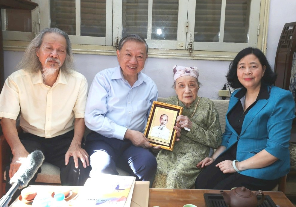 Trong không khí thân tình, ấm áp của ngày Tết Độc lập, Tổng Bí thư, Chủ tịch nước Tô Lâm đã thắp hương tri ân cố nhạc sỹ Văn Cao và tặng quà bà Nghiêm Thuý Băng - vợ ông cùng các con cháu.