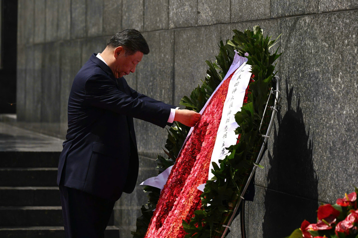 Tổng Bí thư Tô Lâm và Tổng Bí thư, Chủ tịch Trung Quốc Tập Cận Bình cùng đoàn đại biểu đặt vòng hoa, viếng Lăng Chủ tịch Hồ Chí Minh sáng 15/4.