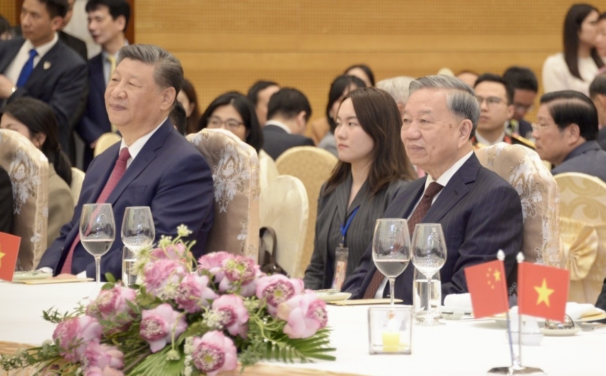 Tối nay tại Hà Nội, thay mặt các lãnh đạo Đảng, Nhà nước Việt Nam Tổng Bí thư Tô Lâm và Chủ tịch nước Lương Cường chủ trì tiệc chiêu đãi cấp nhà nước Tổng Bí thư, Chủ tịch Trung Quốc Tập Cận Bình và đoàn đại biểu cấp cao Trung Quốc đang có chuyến thăm cấp Nhà nước tới nước ta. Cùng dự có Thủ tướng Phạm Minh Chính và Chủ tịch Quốc hội Trần Thanh Mẫn.