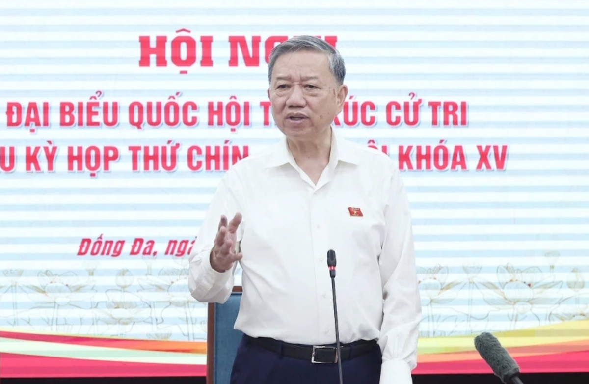 Tổng Bí thư Tô Lâm phát biểu tại buổi tiếp xúc cử tri.