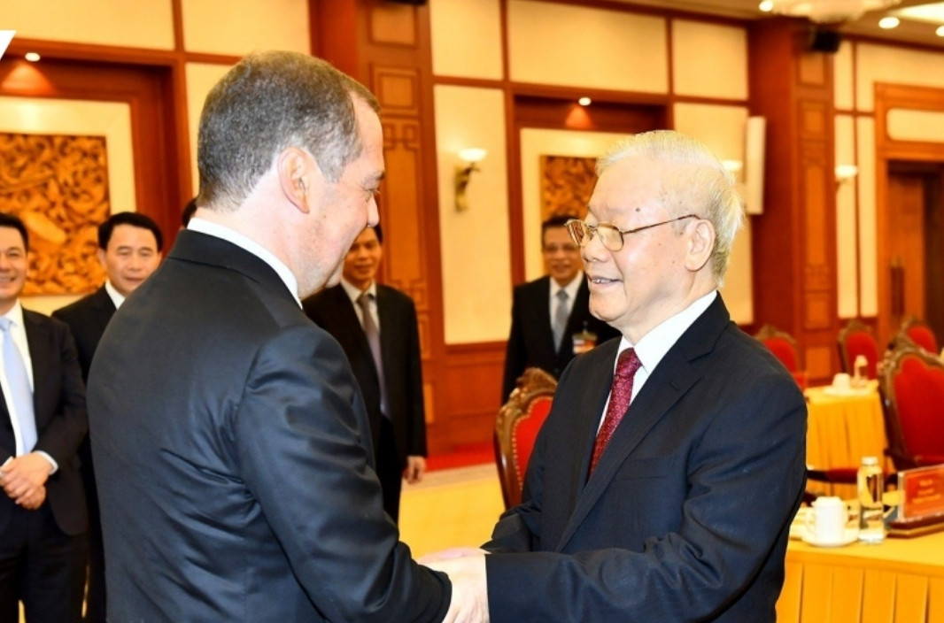 Trong khuôn khổ chuyến thăm chính thức Việt Nam từ ngày 21-23/5, chiều nay (22/5) tại Trụ sở Trung ương Đảng, Tổng Bí thư Nguyễn Phú Trọng chủ trì buổi hội đàm với Chủ tịch Đảng Nước Nga Thống nhất Dmitry Medvedev, Phó Chủ tịch Hội đồng An ninh Liên bang Nga. Trước đó, đầu giờ chiều nay, Đoàn đại biểu Đảng Nước Nga Thống nhất đã đến Đặt vòng hoa tại Đài tưởng niệm các Anh hùng liệt sỹ trên đường Bắc Sơn, và vào Lăng viếng Chủ tịch Hồ Chí Minh.
