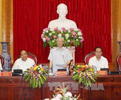 Tổng Bí thư nhấn mạnh, Đảng ủy Công an Trung ương phải quán triệt sâu sắc và thực hiện nghiêm túc đường lối, chủ trương của Đảng, trọng tâm là Nghị quyết Đại hội lần thứ XII, cụ thể hóa đường lối, chủ trương, chính sách của Đảng, Nhà nước, ban hành các nghị quyết, chỉ thị để lãnh đạo, chỉ đạo toàn diện các mặt công tác công an; nâng cao năng lực nắm tình hình, phân tích, đánh giá, dự báo chiến lược, nhận diện sớm các nguy cơ đe dọa an ninh quốc gia để kịp thời tham mưu với Đảng, Nhà nước về đường lối, chủ trương, chính sách, pháp luật về bảo đảm an ninh, trật tự.