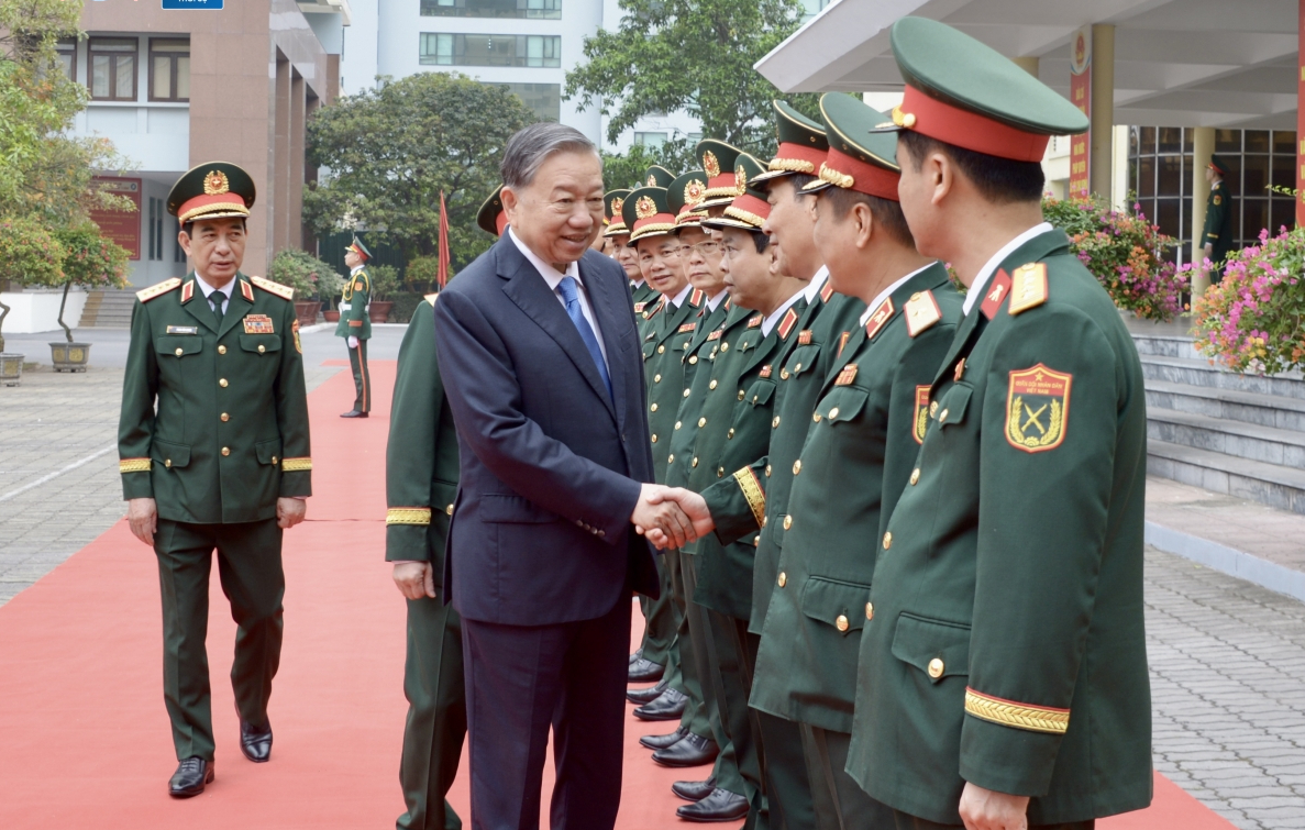 Sáng 17/3, Tổng Bí thư Tô Lâm, Bí thư Quân uỷ Trung ương đến thăm và làm việc với Học viện Kỹ thuật quân sự.