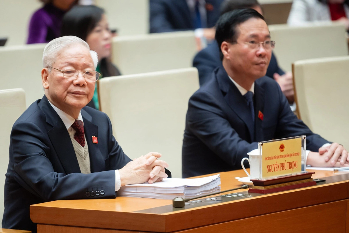 Tổng Bí thư Nguyễn Phú Trọng cùng các lãnh đạo Đảng, Nhà nước, Quốc hội dự lễ khai mạc Kỳ họp bất thường lần thứ 5, Quốc hội khóa XV sáng 15/1. (Ảnh: Phạm Thắng)