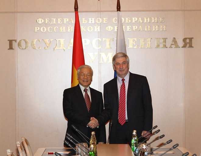 Chủ tịch Hội đồng Liên bang V. Matvienko và quyền Chủ tịch Duma Quốc gia I. Melnhikov bày tỏ vui mừng được chào đón Tổng Bí thư Nguyễn Phú Trọng và Đoàn đại biểu cấp cao Việt Nam sang thăm chính thức Liên bang Nga và đến thăm làm việc với lãnh đạo của Quốc hội Nga; cho rằng chuyến thăm chính thức Liên bang Nga lần này của Lãnh đạo cao nhất của Việt Nam theo lời mời của Tổng thống Vladimir Putin sẽ là một dấu mốc quan trọng trong quan hệ hai nước, góp phần củng cố và làm sâu sắc hơn quan hệ đối tác chiến lược toàn diện Việt Nam – Liên bang Nga.