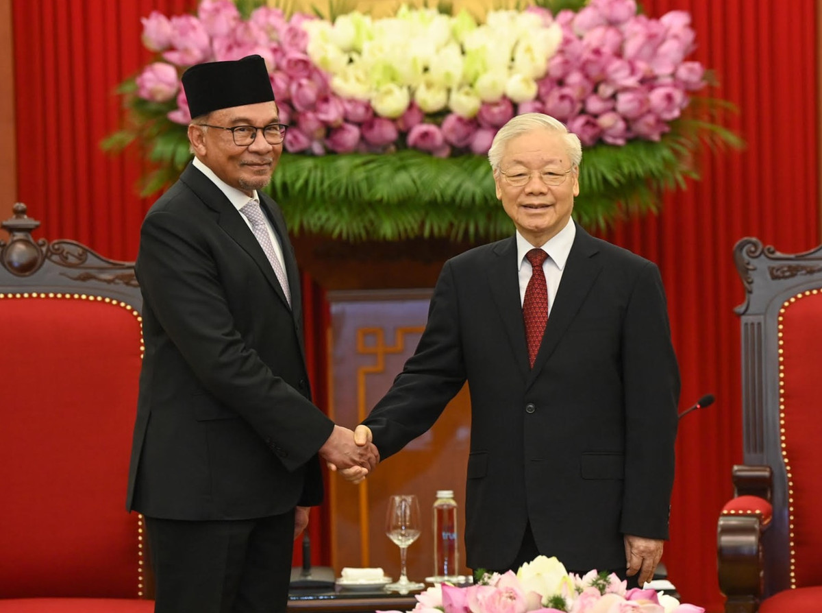 Tổng Bí thư Nguyễn Phú Trọng và Thủ tướng Malaysia Anwar Ibrahim