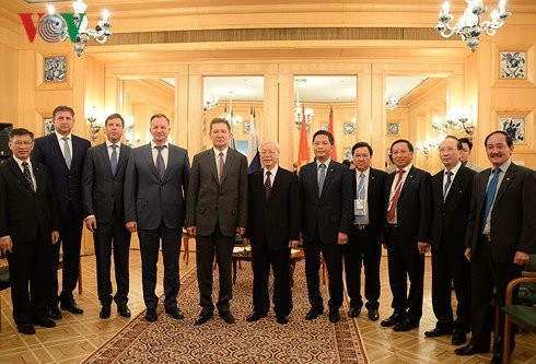 Trong khuôn khổ chuyến thăm chính thức Liên bang Nga, chiều 7/9 (giờ địa phương), tại Moskva, Tổng Bí thư Nguyễn Phú Trọng đã tiếp lãnh đạo các tập đoàn Gazprom và Zarubezneft. Đây là những tập đoàn dầu khí hàng đầu của Liên bang Nga, có quan hệ hợp tác truyền thống và hiệu quả với Việt Nam.