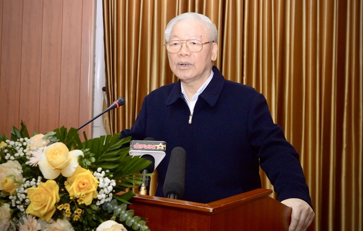 Tổng Bí thư Nguyễn Phú Trọng phát biểu tại Hội nghị Quân ủy Trung ương lần thứ 8.