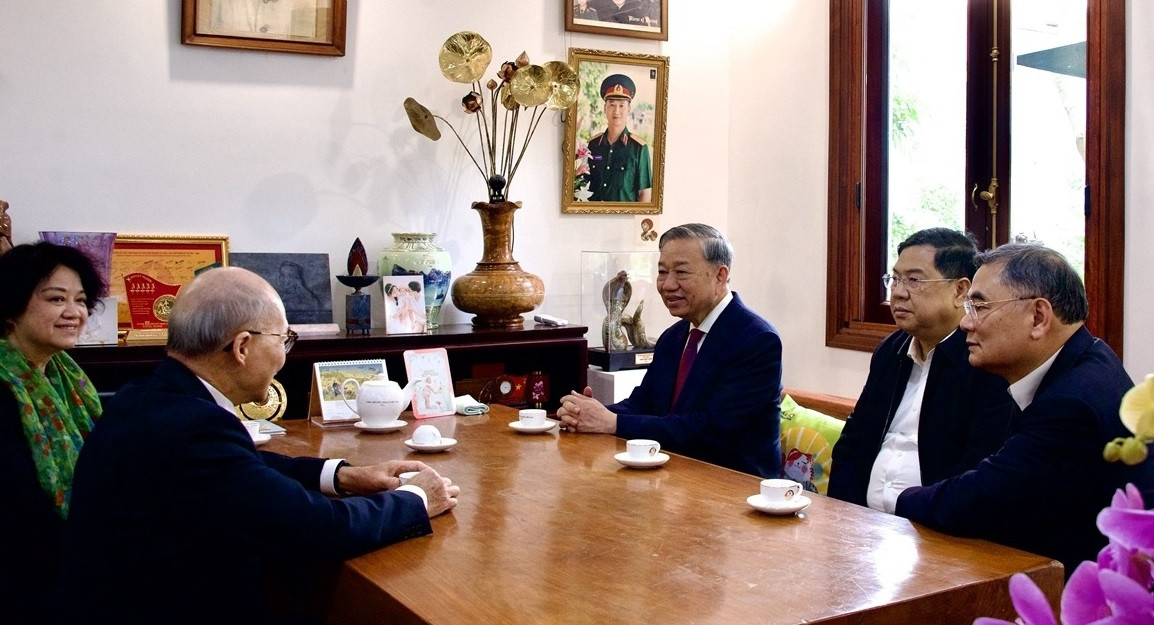 Tổng Bí thư tới thăm chúc tết Trung tướng Đặng Quân Thuỵ.