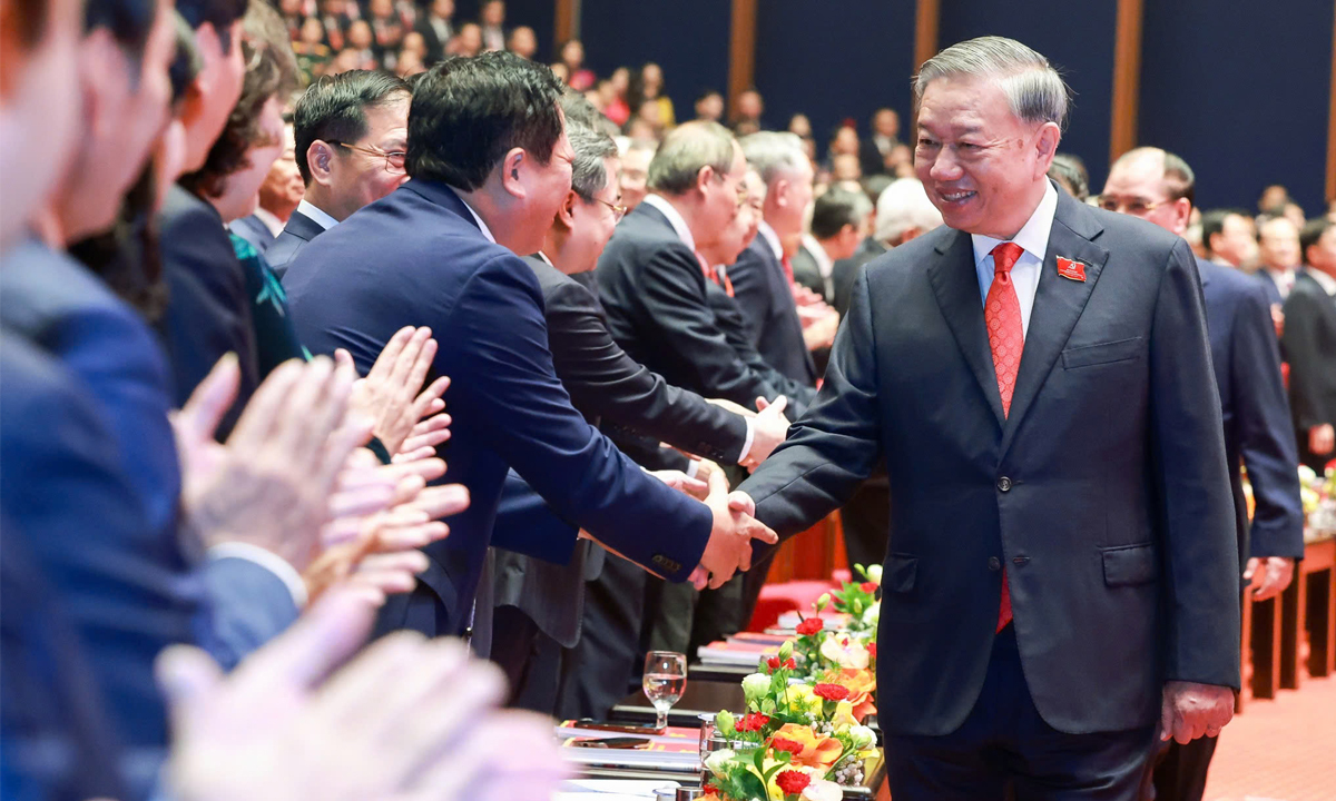 Tổng Bí thư Tô Lâm cùng các lãnh đạo, nguyên lãnh đạo Đảng và Nhà nước dự Đại hội.