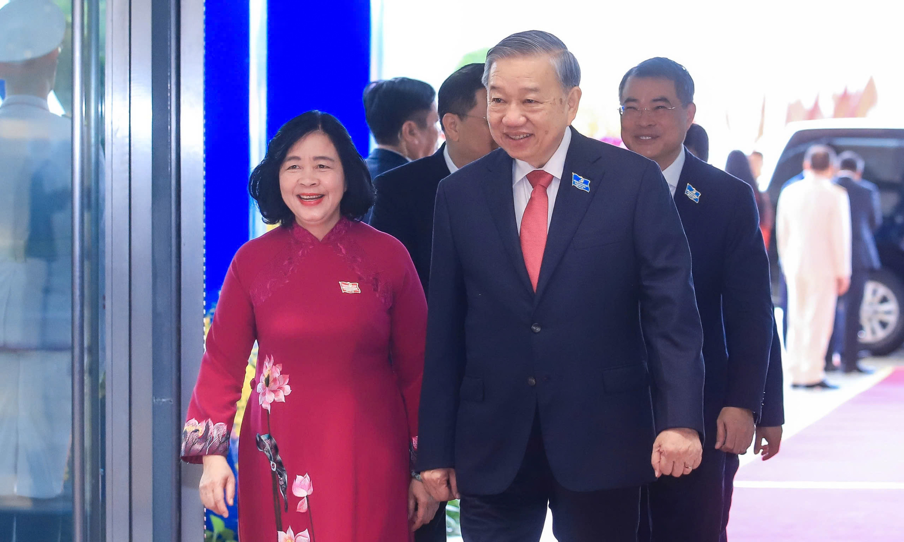Bà Bùi Thị Minh Hoài, Ủy viên Bộ Chính trị, Bí thư Thành ủy Hà Nội đón Tổng Bí thư Tô Lâm đến dự Đại hội đại biểu Đảng bộ TP Hà Nội lần thứ XVIII, nhiệm kỳ 2025 - 2030.