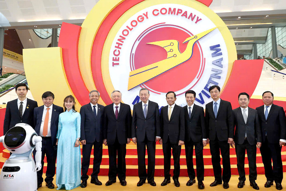 Tổng Bí thư Tô Lâm và các đại biểu dự Diễn đàn quốc gia phát triển doanh nghiệp công nghệ số Việt Nam lần thứ 6. (Ảnh: Vietnamnet)